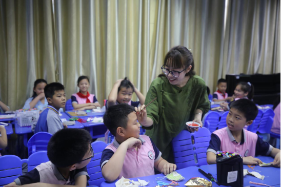 李希老师用牛皮纸包装好的一束艾叶,引出了本节课的主题《端午节》。通过出示不同造型的香囊图片,引导员工观察香囊的结构和造型特征。接着制作香囊环节时,李老师为每组提供了线索锦囊,激发员工的好奇心和探索心。李老师的课堂活泼生动,员工的综合素养很高。