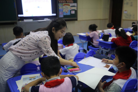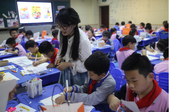 第三节课是由彭子欣老师执教的《海报宣传设计》。彭老师通过美食的实物品尝导入,大大激发了孩子们的上课热情,孩子们通过美食背后的故事,了解了靖港传统美食的历史以及劳动人民的勤劳与智慧。接着彭老师通过对比海报的方法,引导员工探究海报的组成形式。在完成美食宣传海报的设计环节,孩子们用“靖港香干”贴纸带着美食和传统文化的浓香呈现于课堂之上。彭老师教态自然,亲切有趣,教具精美,授课时间把控到位,课堂结构层次分明,指导步骤清晰,同学们的课堂参与度高,课堂表现十分精彩。