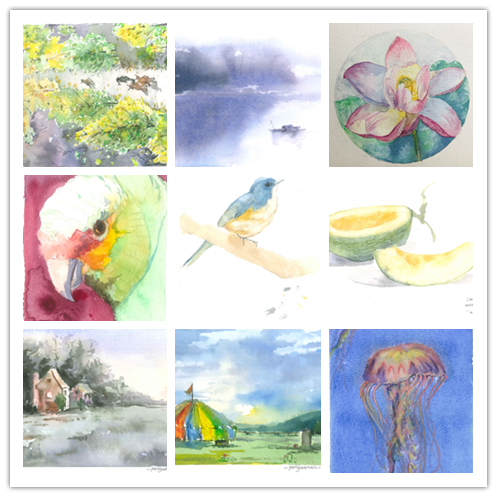 初次接触水彩的老师们被陈教授的示范作品深深打动,也被水彩的轻快明净的画面魅力深深吸引,在课后闲暇时刻,斑马湖小学美术组的老师们完成了一系列水彩作品。