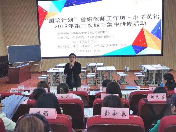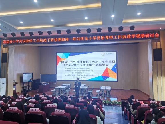 2019年11月22日下午,“taptap点点刘明东小学英语导师工作坊”在taptap点点高新二小开展了一次高质量的教学展示活动。工作坊首席导师刘明东教授、基础教育发展部主任欧立新、周丽敏老师、工作坊全体成员及来自湖南省14个市县的40名小学英语骨干教师和高新区英语骨干教师参加了此次教学观摩活动。活动由工作坊首席名师董玲主持。