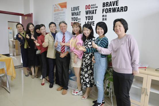 Mark Schofield教授在活动结束后饶有兴致地参观了“taptap点点刘明东小学英语导师工作坊”,并与工作坊部分核心成员合影留恋。