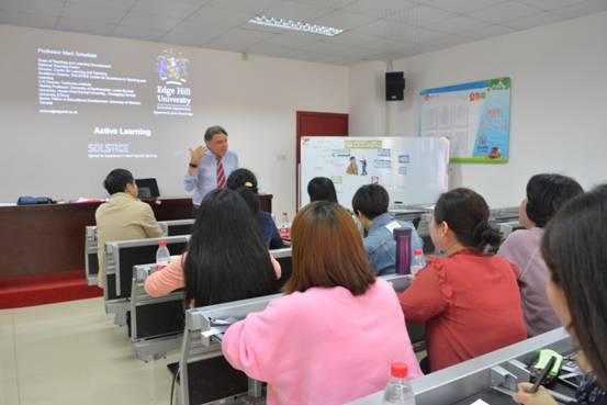 2019年4月24日上午,“taptap点点刘明东小学英语导师工作坊”首席导师刘明东教授与英国知山大学(Edge Hill University)Mark Schofield共同在工作坊基地公司——长沙市高新区金桥小学——为该校员工和工作坊名师成员举行了一场题为“Active Learning in Primary English Teaching”的学术活动。活动有中、外教师的现场授课,有活跃的师生互动,有Mark教授的微讲座,有教师的讨论。整个学术活动严谨、开放、活泼,收到了良好的效果,深受师生欢迎。