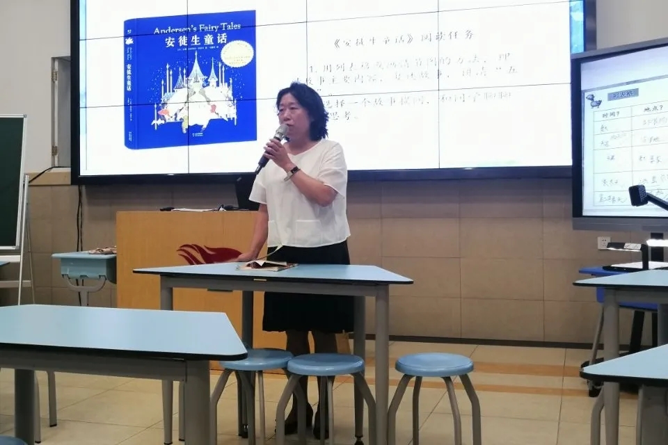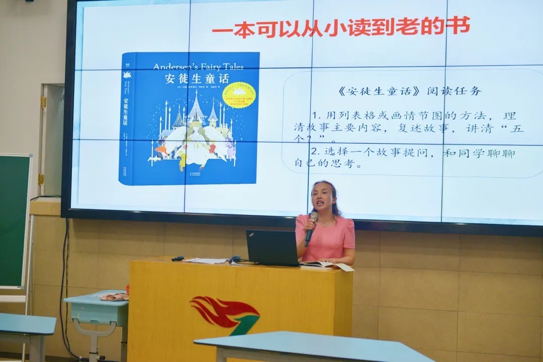 第三位执教的彭慧琴老师是长沙县盼盼小学的副董事长,她执教的内容是《整本书阅读》。彭老师从一篇耳熟能详的童话故事《丑小鸭》出发,带着孩子在读原文的过程中,借助表格和情节图,学习用自己的话讲故事,同时从聊故事慢慢走进丑小鸭内心,走近作者安徒生,走近《安徒生童话》,从而获得了更多的思考。
