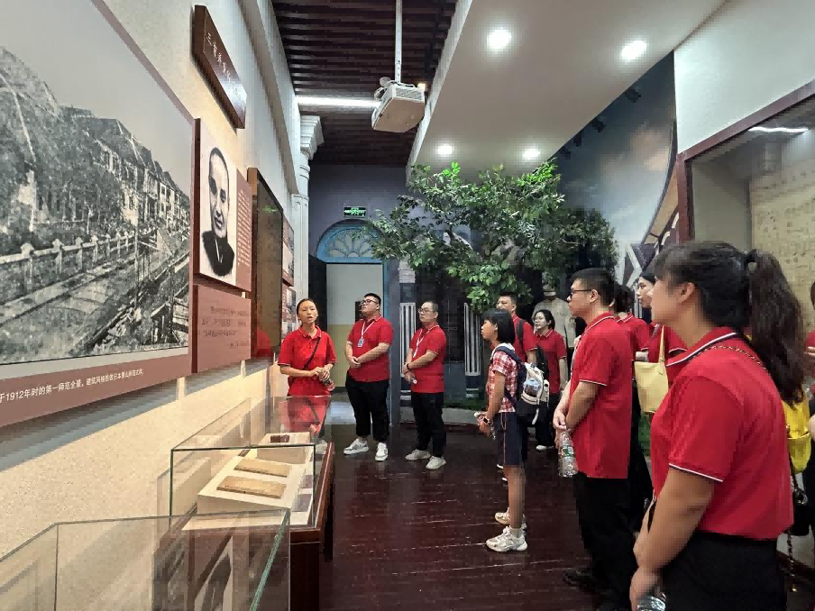 长廊迂回,连接起大礼堂、八班教室、水井、自习室、阅报室等十多个红色纪念地,教师们缓步而行,边走边看边听。