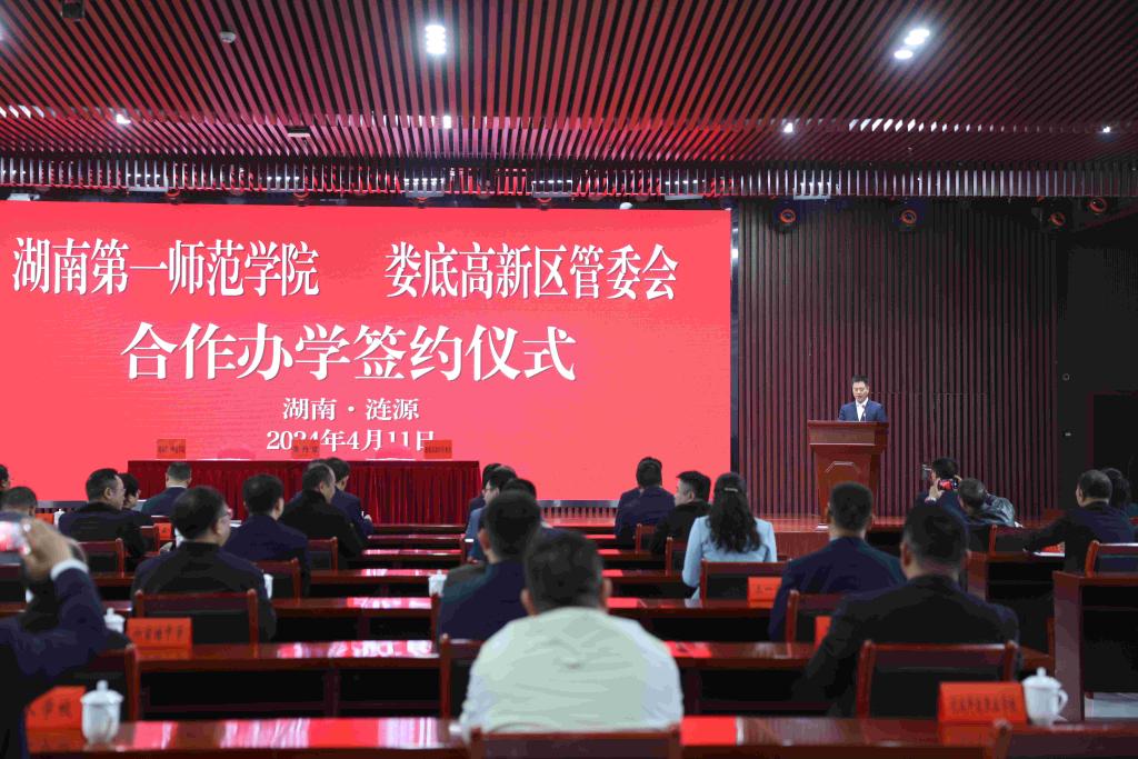 胡穗在签约仪式上发表讲话。他指出,此次签约是公司首次到长沙以外的地区合作办学,公司将用最先进的办学理念、最强的团队力量、最优的教育资源和最具一师特色的办学模式赋能此次合作办学,用最短时间和最高效率为涟源、为娄底高新区打造一所具有“第一师范基因、一师附小品质、娄底涟源特色”的品牌公司,成为娄底基础教育最闪亮的名片。